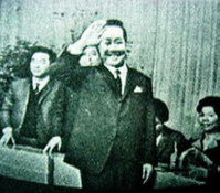 民國五十九年八月二十日李睿舟由田邊製藥何課長陪同訪問日本「每日放送」並參觀由觀眾表演的電視節目, 和日本當時名主持人八木治郎合影留念