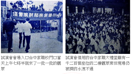 民國五十五年四月,由於中南部報名觀眾實在太多,通訊報名無法滿足他們,所以田邊製藥便決定舉辦一次試演會,擇定台中為首次舉辦試演會地點,地點是在台中市家事職業學校大禮堂。