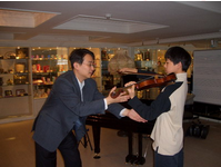 學小提琴的張鎮洲因為五燈獎的胡琴比賽而讓演奏小提琴的技巧更精進純熟,圖為他在指導學生小提琴